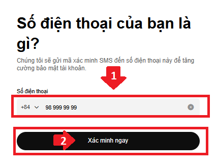 Bước 5: Nhập mã xác minh được gửi về số điện thoại bạn vừa đăng ký